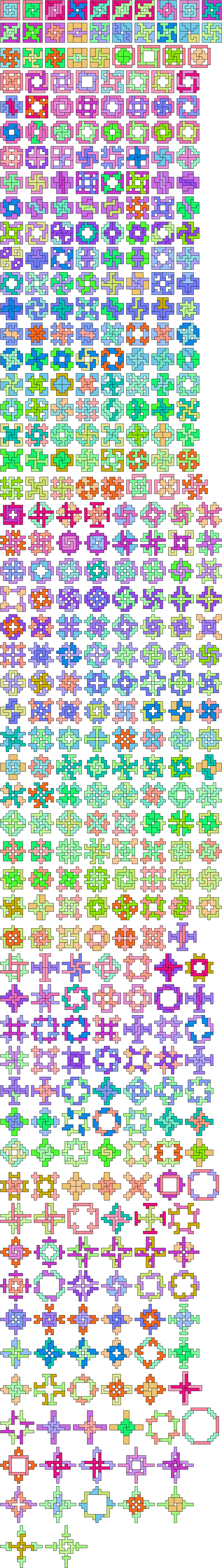 For polyominoes, that means square symmetry, or 4-way rotary with reflection.