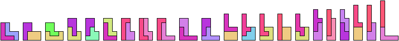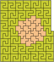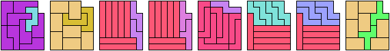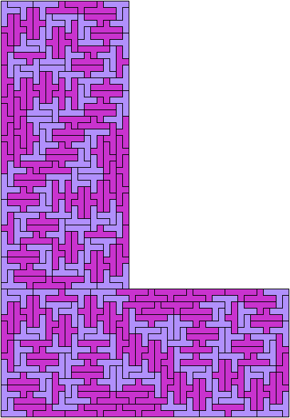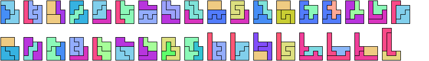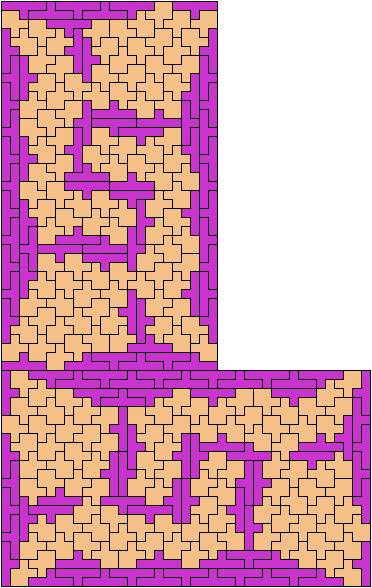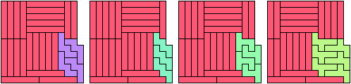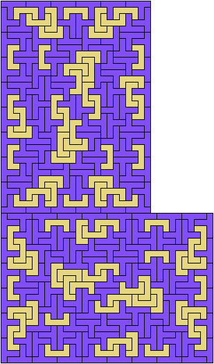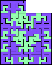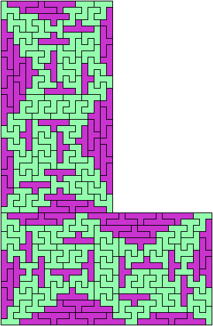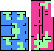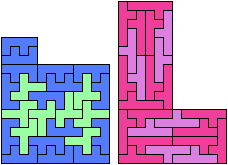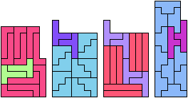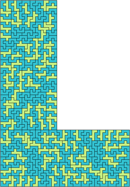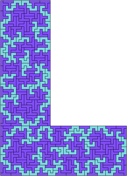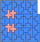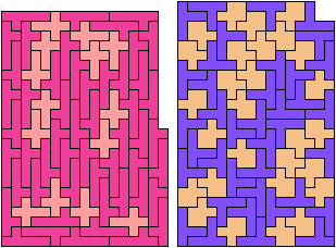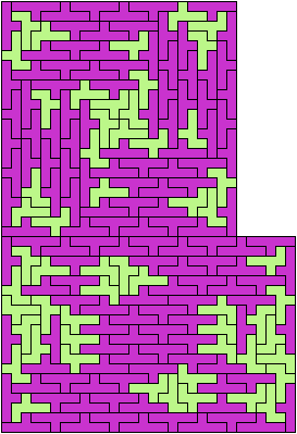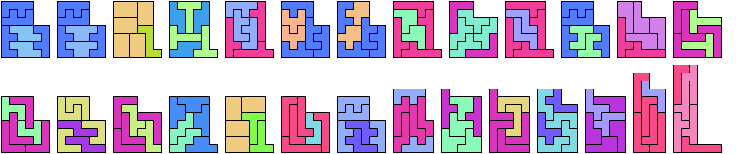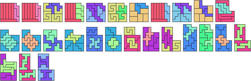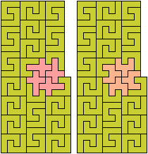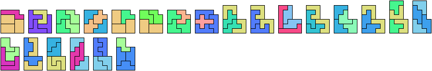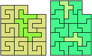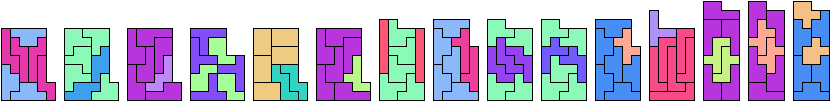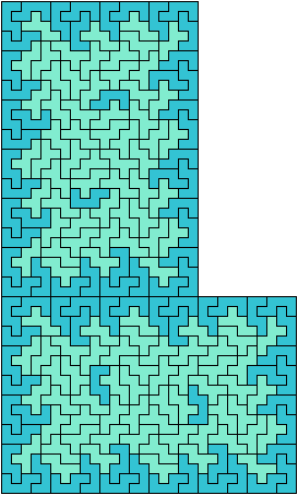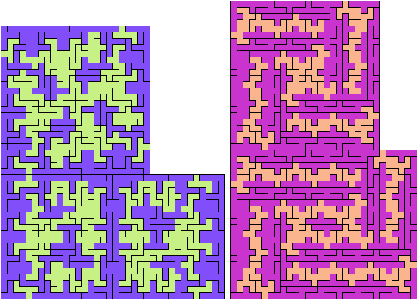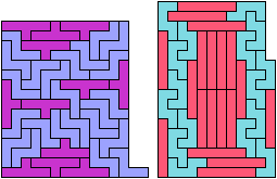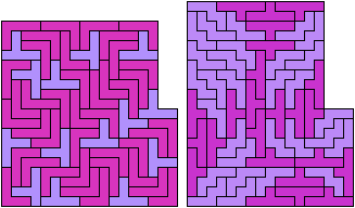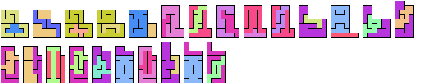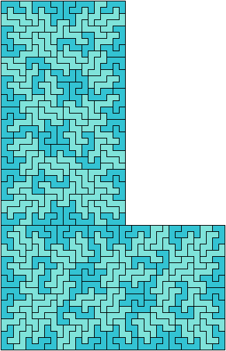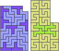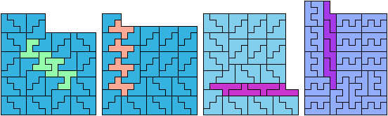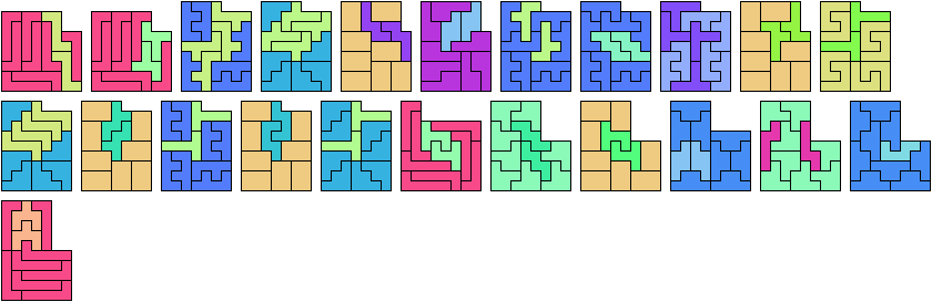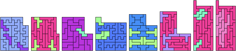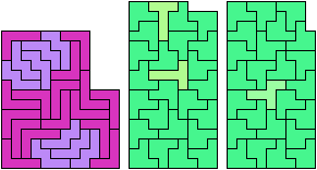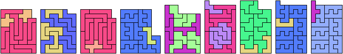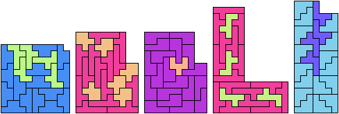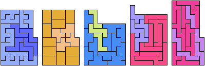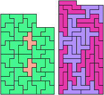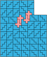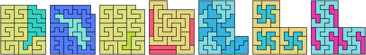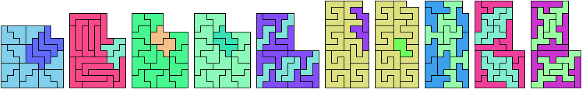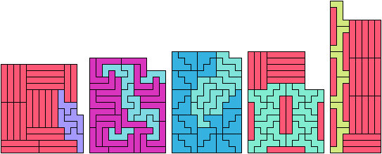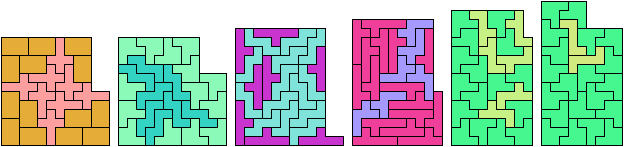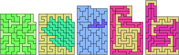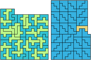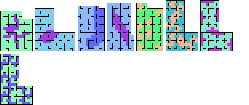 Many of the solutions shown were formed in this way, often from rectangular tilings discovered by Mike Reid. They are not all known to be the smallest possible. If you find a smaller solution or solve an unsolved case, please write.