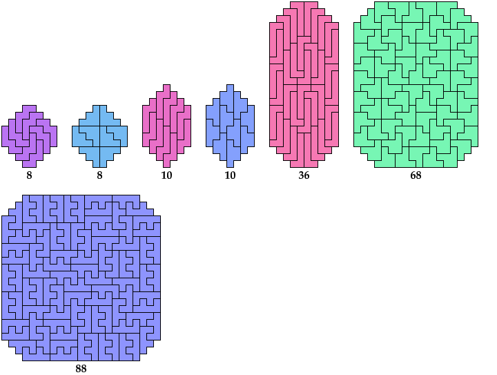 Here I show the smallest known tilings for various cutoffs.