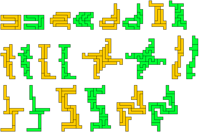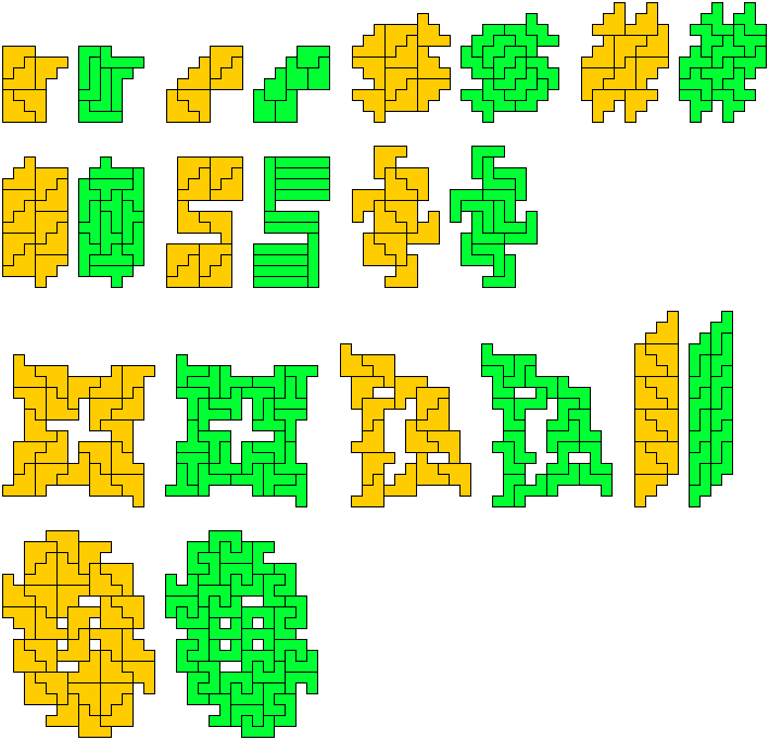 Juris Čerņenoks found complex compatibility figures for two 11-ominoes with the L tetromino.