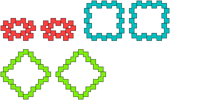 Polyjogs are plane figures formed by joining equal squares