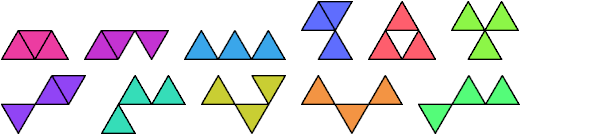 Two-sided polymings are identified under reflection as well as rotation. One-sided polymings are distinguished under reflection. That is, if a polyming and its mirror image are distinct, both are counted.