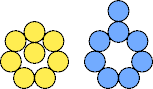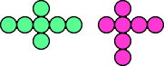 Polypennies may also be distinguished by isomorphism of their adjacency graphs without respect to the cyclical sequence of adjacencies at each node. These polypennies have isomorphic adjacency graphs and are not internally homeomorphic:
