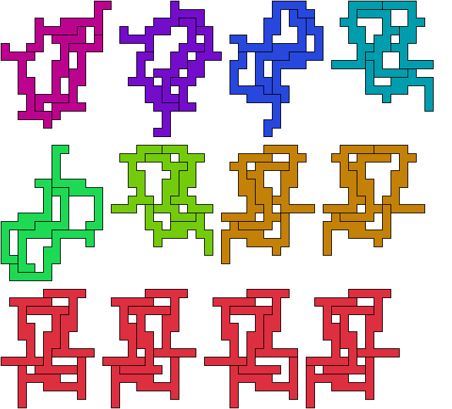For similar or scaled tetrads, see Scaled Polyomino Tetrads.
