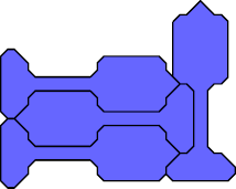 Dr. Karl Scherer found this holeless tetrad for a symmetric polyabolo. It uses a 278-abolo with only 27 edges: