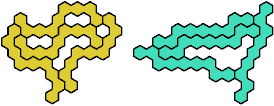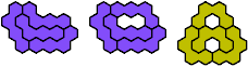 The smallest polyhex tetrads use tetrahexes. The first, by Scott Kim, is from Gardner's book.