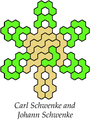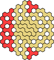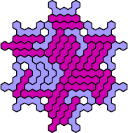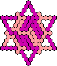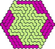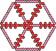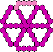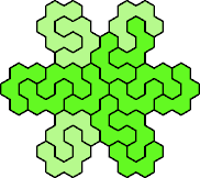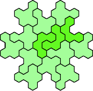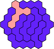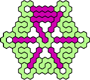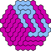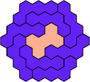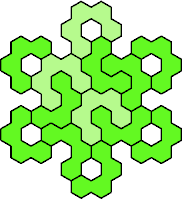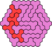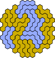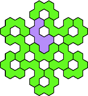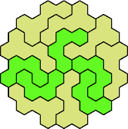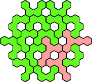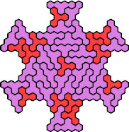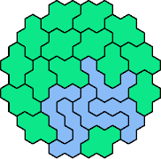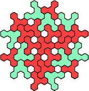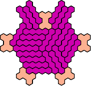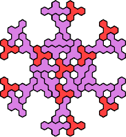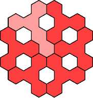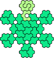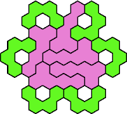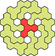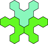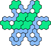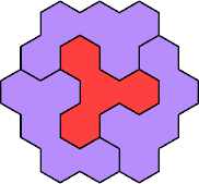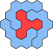 Here are the smallest known fully symmetric polyhexes with an odd number of cells, formed by copies of a given tetrahex and pentahex, using at least one of each.