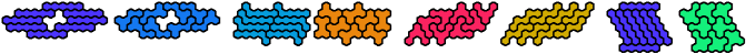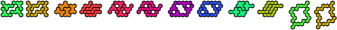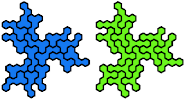 Dr. Erich Friedman's Math Magic for September 2004 shows compatibility figures for pairs of pentahexes (and many other polyforms). Here are minimal known compatibility figures for pairs of pentahexes. Joe DeVincentis and Dr. Friedman found many solutions. Dr. Andrejs Cibulis was the first to solve some of the hardest compatibilities.