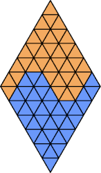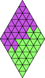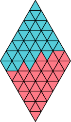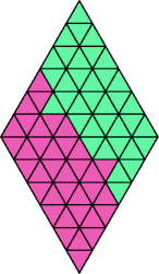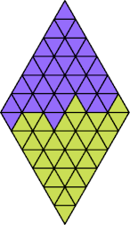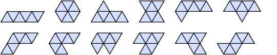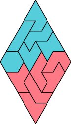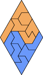 Cover each diamond with the 12 hexiamonds so that every hexiamond covers cells of just one color. You may flip hexiamonds over.