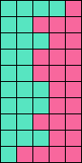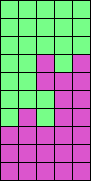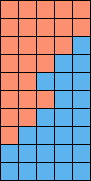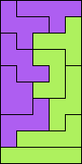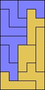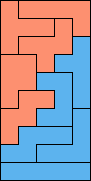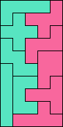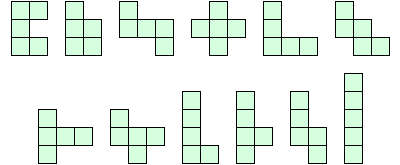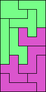 Cover each domino with 10 of the 12 pentominoes so that every pentomino covers cells of just one color. You may flip pentominoes over.