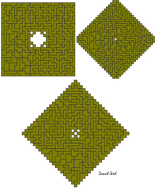 David Bird hat auch einige Konstruktionen mit Oktominos hergestellt und mindestens eine mit Enneominos. (Die Zeichnungen stammen von Mike Reid)