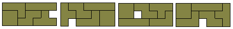 Die Tetrominos können zu einigen interessanten Figuren zusammengestellt werden und die Zeichnung unten zeigt, dass man 3x7-Rechtecke bilden kann mit einem fehlenden Quadrat. Beachten Sie: Wenn man diese Muster abwechselnd schwarz und weiß färbt, hat man von der einen Farbe 11 und der anderen 9 Quadrate.