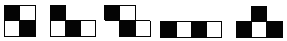 Ein n-omino ist eine Figur aus n Quadraten, die mit den Seiten aneinander stoßen. Man kann sich auch vorstellen, das sie ein Ausschnitt aus einem quadratischen Gitter ist. In der Zeichnung unten sind die drei linken Figuren Polyominoes, die beiden rechten aber nicht.
