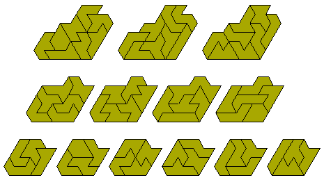 Con 24 eptamanti potrebbe essere possibile produrre tre, quattro o sei congruente forme con una collezione piena. Tutto di questi è possibile come mostra nel seguente diagrammi da Pieter Torbijn.