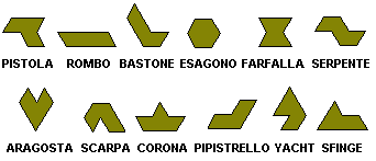 Ci sono 12 esamanti che coprono un'area di 72 triangoli. Questi sono riportati qui sotto con i nomi con cui solitamente sono conosciuti uno ad uno.