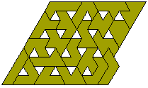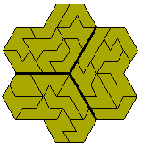 We can also join 6 heptiamonds and then extend the construction to make a shape similar to the original but twice the size. This solution is by Pieter Torbijn.