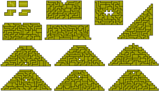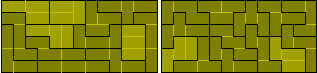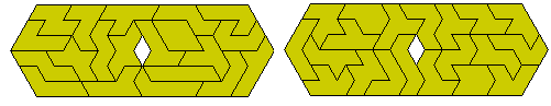 Notice that there are two types of tromino used and other, smaller sets could be produced if we were to look at specific combinations - two trominoes of the same type or one of each type as in this construction.