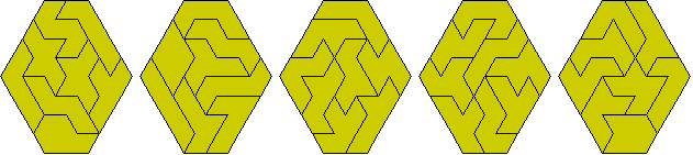 With the tetradiamonds there is one piece which can be formed in two distict ways. We normally only use one piece in any construction. For the pentadiamonds there are ten such pieces.