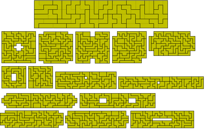 Polytrominoes are combinations of trominoes. The figure below shows the 29 ditrominoes firstly in the only possible rectangle the 6x29.
