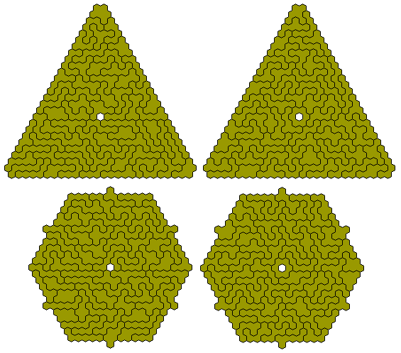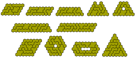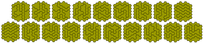 The diagram below shows two constructions made with the 73 tridohexes without a hole.