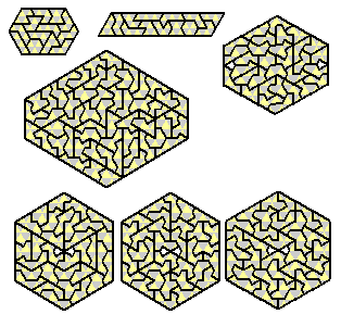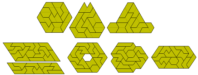 The full set can be used to make 11-fold copies of an heptiamond with a hole.