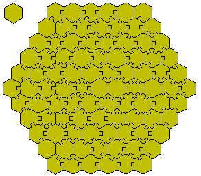 Using the same methods with hexagons we get 92 pieces. This solution is by Miroslav Vicher (May 2000)r.
