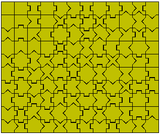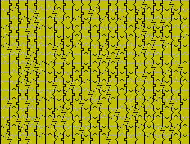 Here we use two male and two female type edges to get 120 pieces. This 10x12 rectangle was made by Alessandro Fogliati in Aug 2001.