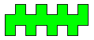The generalised U n-cube above forms a 2 x (n-2) x n box as shown. In this, and all other examples, the diagram of the construction is for a particular example (here n = 10). In subsequent diagrams in this section the dots and circles will be omitted but the constructions are simple enough to follow. Also in these diagrams, as above, the full shape (when in a layer) will be coloured green and the parts of a shape in different layers will be yellow.