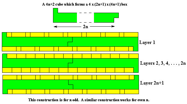 to make a 2n x (4n-1) x 4n box. Another generalisation of his is shown below.