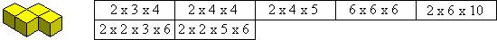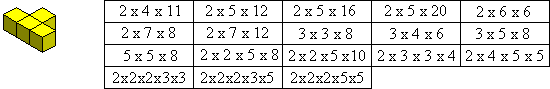As with polyominoes in rectangles we can sometimes pack sets of congruent polycubes into 'boxes'. A lot of information on this is given in Tiling and Packing results of Torsten Sillke - Packing Polycubes and this page will provide a sample of the data available and include some results not found elsewhere on the Internet.