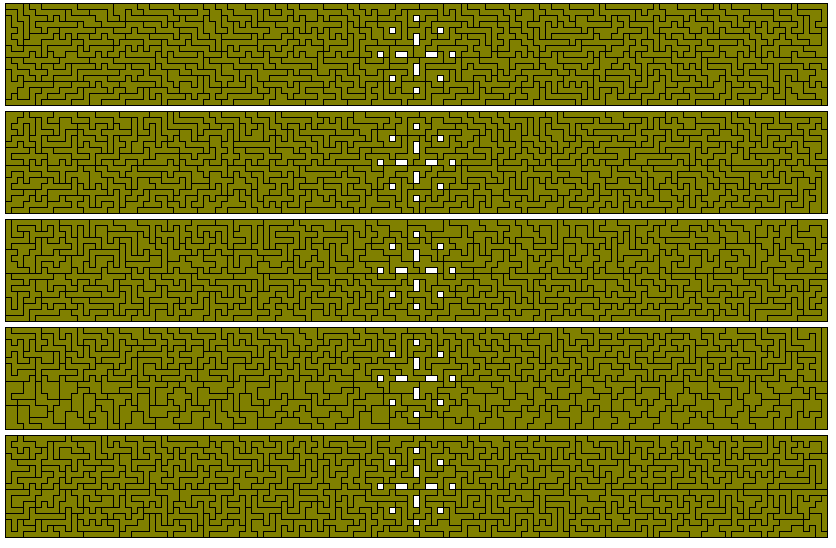 Until 2005 only one enneomino pattern was known until Peter Esser produced five copies of the 17 x 137 rectangle below.