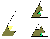 cannot form a parallelogram, trapezium or triangle. We can see this by considering the following. First if we look at a straight edge which needs to be filled with polyiamonds we see that each polyiamond can contribute one of three type sections to the edge (see A, P and B below).