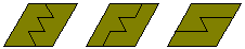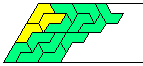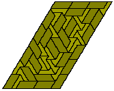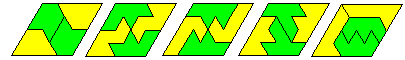 This polyiamond also illustrates another interesting difference between polyiamonds and rectifiable polyominoes. For the polyominoes there is no known example of one which can tile a half strip and yet not tile a rectangle. This pentiamond can, however, tile a half 'strip' as shown below.
