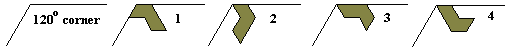 Now if we try to use the pentiamond to fill a triangle we see we shall need to fill a B type space at some point and since the pentiamond has only P and A type edges this is not possible. Next if we consider the parallelogram and trapezium we see we must fill a 120 degree corner and this can be done in one of four ways.