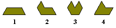 Of the four pentiamonds (above) 1 is itself a trapezium and can form parallelograms and hexagons; 2 we have shown above forms hexagons only (of any side 5n); 3 cannot form any regular shape and 4 can form a hexagon of side 5 but can form neither a parallelogram nor a triangle as shown below.