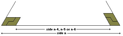The 12-12 trapezium above can be extended by the construction at the right to form any (12+2n)-12 trapezium. This will allow the Yacht-Crown 18 sided triangle to be extended to form any triangle of side (18+12n). Also the Yacht-Crown 24 sided triangle can similarly be used to form a triangle of side (24+12n). This shows that any triangle of side 6n can be formed for all n>2.