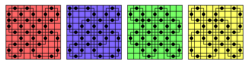 From many places on the board it's possible to finish with a 32-loop. There are two essentially different 32-loop patterns possible on this board which have symmetry about both diagonals. These patterns are shown in the right three diagrams at the top of this page.