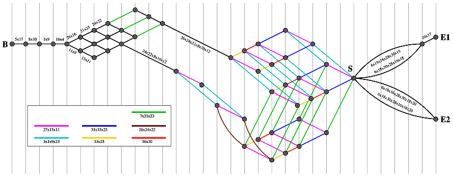 The nodes of the solution graph are the board positions along minimal length solutions, and the links joining them are the moves between these board positions. As a result of our calculation by levels, we already have some of these board positions, namely those in the intersection between the forward and backward level sets (B11 and B-7 in our example). To recover all the board positions in any minimal length solution, it is just a matter of tracing these board positions both backward and forward in the level sets.