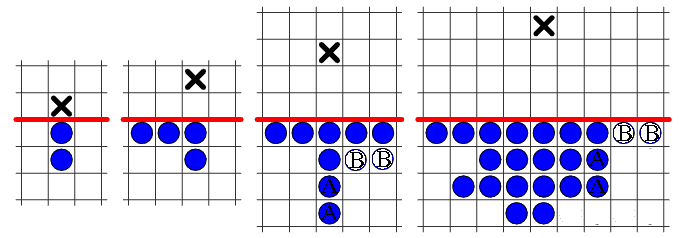 W7. | Simon Tatham has also considered the puzzle where the number of jumps can be infinite. He shows how Conway's Army can reach level 5 in this infinite setting. |