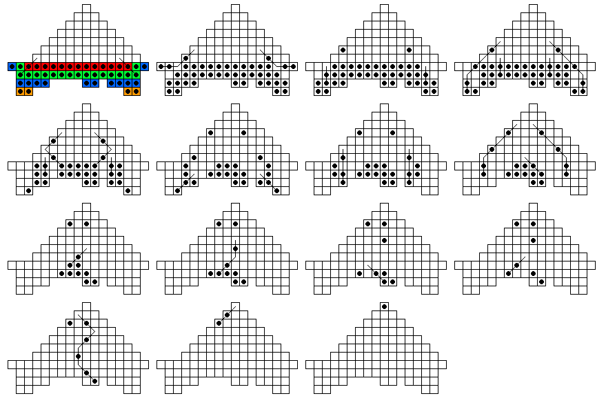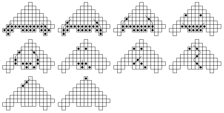 ![]() ![]() The smallest army capable of moving forward eight rows, when diagonal jumps are allowed [P2]. |