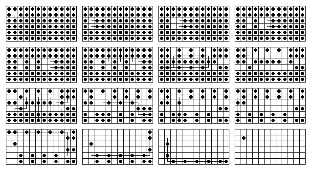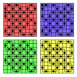 ![]() Legal jumps in 4x4 toroidal solitaire |