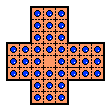 A board is called rectangular-symmetric if it is unchanged when reflected about the x- or y-axes, and rotationally-symmetric if it is unchanged by any 90 degree rotation. A board is called square-symmetric if it is both rectangular-symmetric and rotationally-symmetric. Finally, a square-symmetric board with a unique central hole is called odd because its width is odd, and it also has an odd total number of holes. We see that the board above is odd, square-symmetric and gapless.