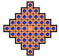 This board is a member of a general class known as a draughtsboard. Such boards are obtained by taking any square board, and labeling the holes alternately as on a chess or checkers board. Then the board is rotated 45 degrees and the black squares define the holes of the draughtsboard. The 41-hole diamond board can be so obtained starting from a 9x9 square board.