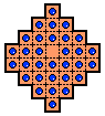 The most useful resource counts generally have negative values in corners (in fact, it is not hard to show that a resource count can only have a negative value at a corner). If a certain move leaves the board with a value that is less than that of our final position, we know that this move cannot possibly lead to a solution. A very useful resource count on the 41-hole diamond board is: